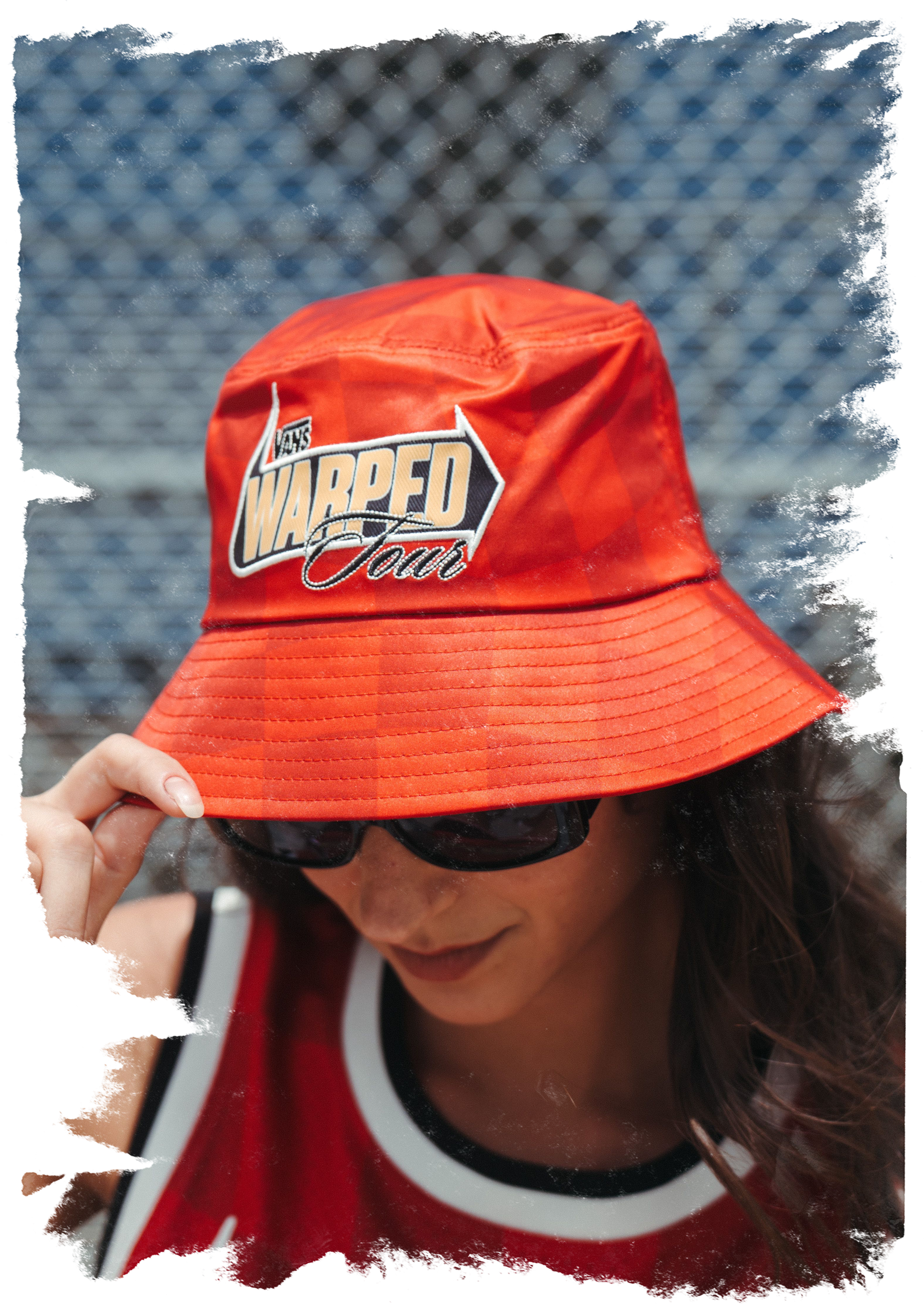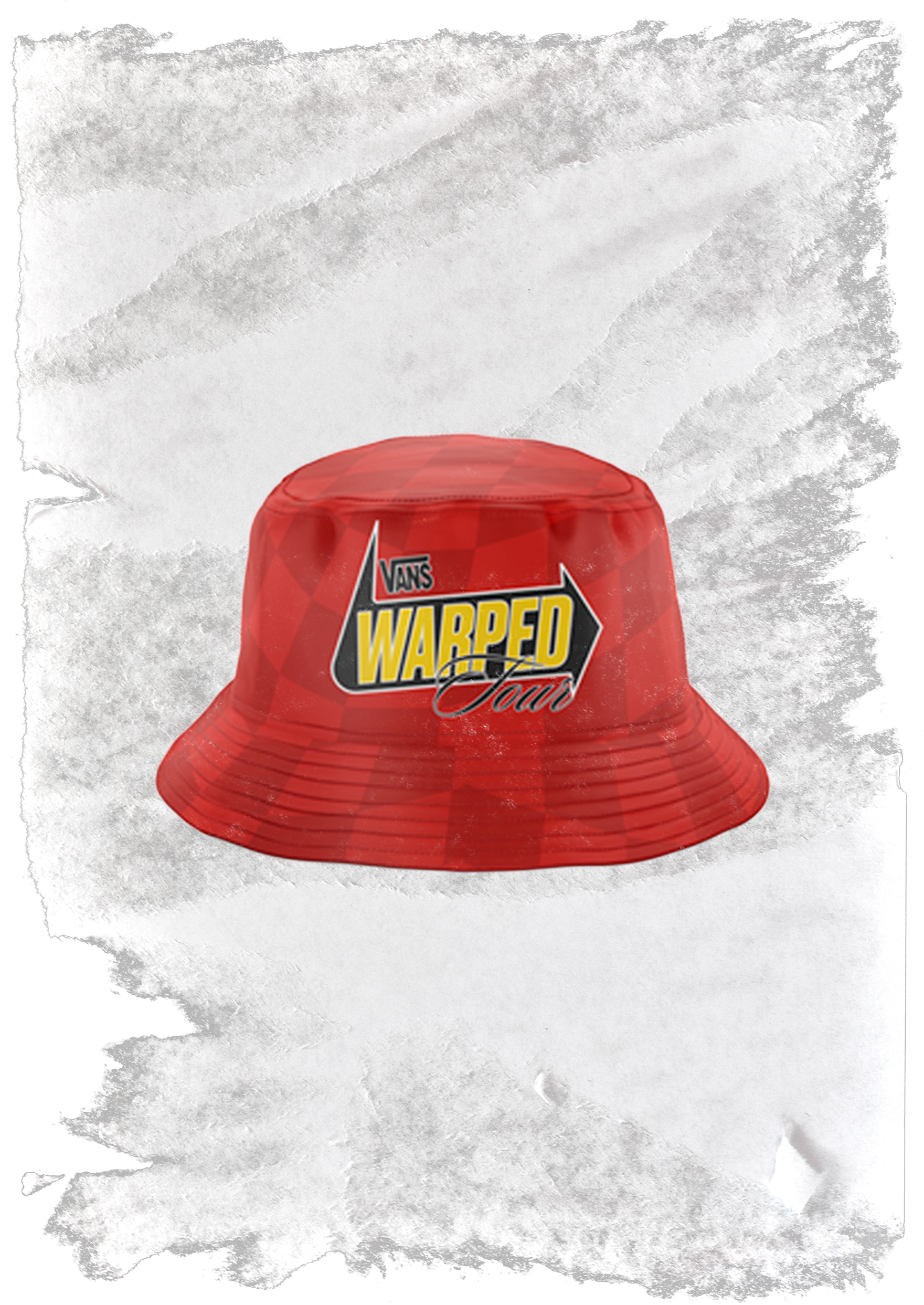 Celebrate three decades of punk, skate, and summer with the Checkered Red Bucket Hat— a tribute to the tour that shaped a generation. This vibrant bucket hat features a bold checkerboard red pattern, with eye-catching yellow and black “Warped Tour” graphic.