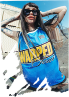 Celebrate three decades of punk, skate, and summer with the Warped Tour 30th Anniversary Jersey — a tribute to the tour that shaped a generation. This vibrant basketball-style tank features a bold checkerboard blue pattern, trimmed in black and white piping, with eye-catching yellow and black “Warped Tour” graphics across the chest.